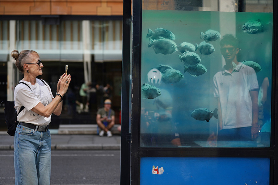 Седьмая работа художника Бэнкси за эту неделю появилась в центральной части Лондона. На этот раз это изображение стаи пираний на прозрачной полицейской будке, что создает иллюзию аквариума. Фото работы представлено на странице художника в Instagram (владелец соцсети — компания Meta, признана экстремистской и запрещена в России).