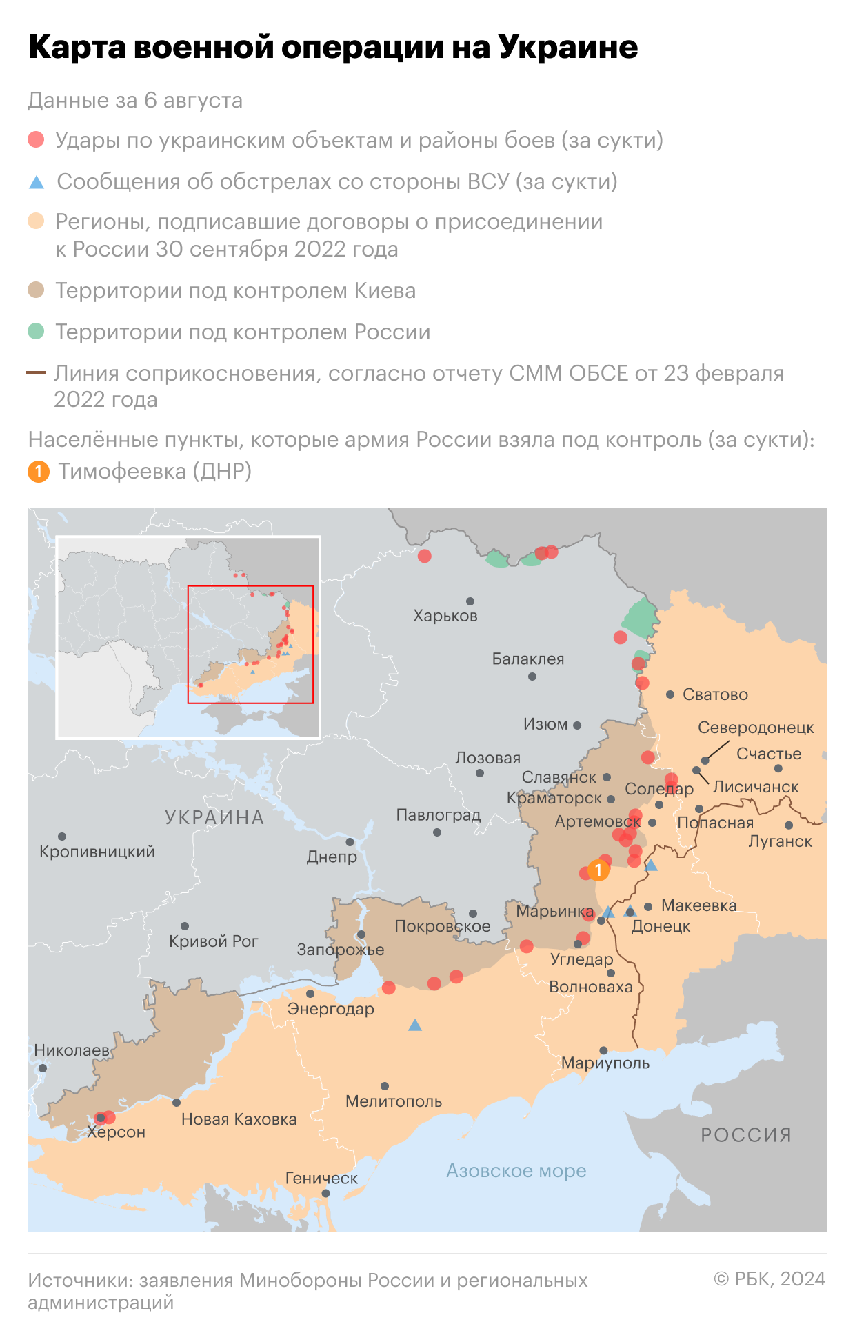 О столкновениях с диверсантами в приграничных районах Курской области утром 6 августа сообщил временно исполняющий обязанности губернатора региона Алексей Смирнов. В Минобороны пояснили, что в попытке прорыва границы участвовало около 300 украинских диверсантов. По информации ведомства, были атакованы российские позиции в районе села Николаево-Дарьино и хутора Олешня Суджанского района, расстояние между которыми составляет около 15 км по прямой.