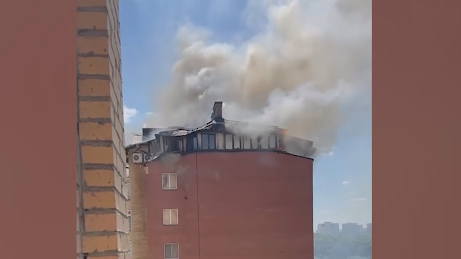 По информации телеграм-каналов, пламя охватило почти всю крышу здания. На месте происшествия работают сотрудники МЧС. Бригады скорой помощи находятся возле дома, информации о пострадавших пока нет.
