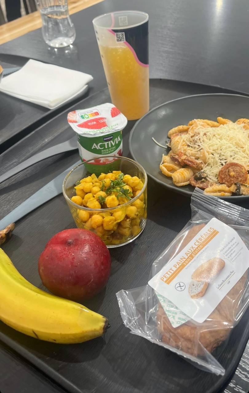 Обедала я лишь раз, но очередей в моем центре не было. Он работал в формате шведского стола: можно было выбрать салат и второе блюдо, также можно было взять фрукты, круассан или другую выпечку, безалкогольные напитки.