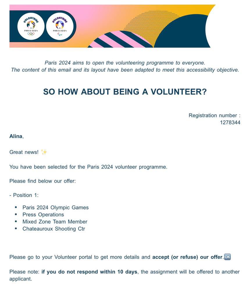 В марте 2023 года я прочитала о наборе волонтеров на Олимпиаду-2024 в Париже. Решила отправить заявку. Мне хотелось стать частью такого значимого исторического события. Ну и любопытно было побывать на нем в таком качестве.