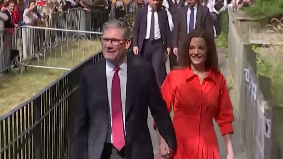 Прибытие лидера предвыборной гонки Кира Стармера на выборы в Великобритании
