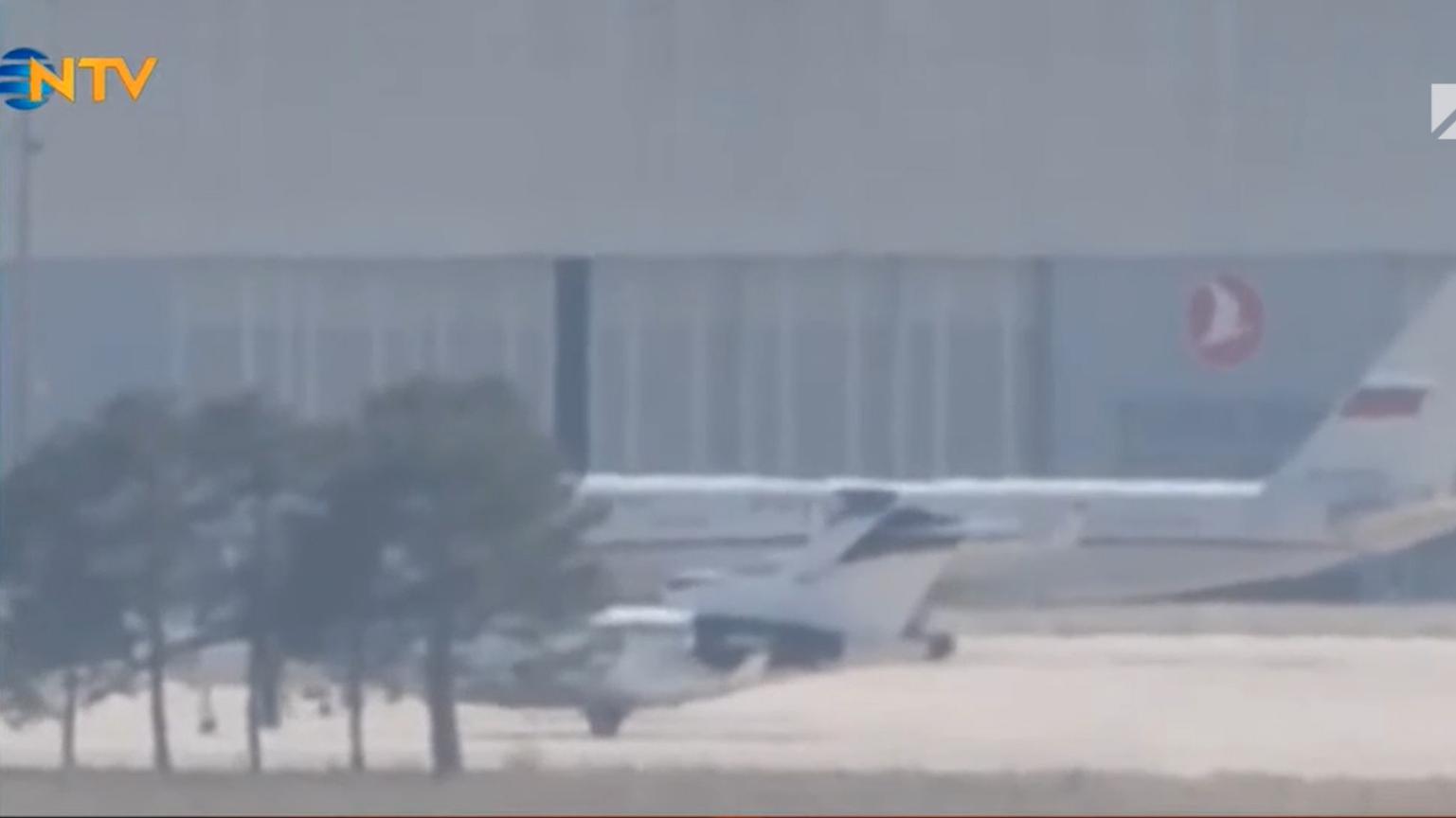 На видеозаписи виден российский самолет с флагом России на хвосте, находящийся у терминала. Также рядом стоят два меньших самолета, похожие на бизнес-джеты, на которых отсутствуют опознавательные знаки.