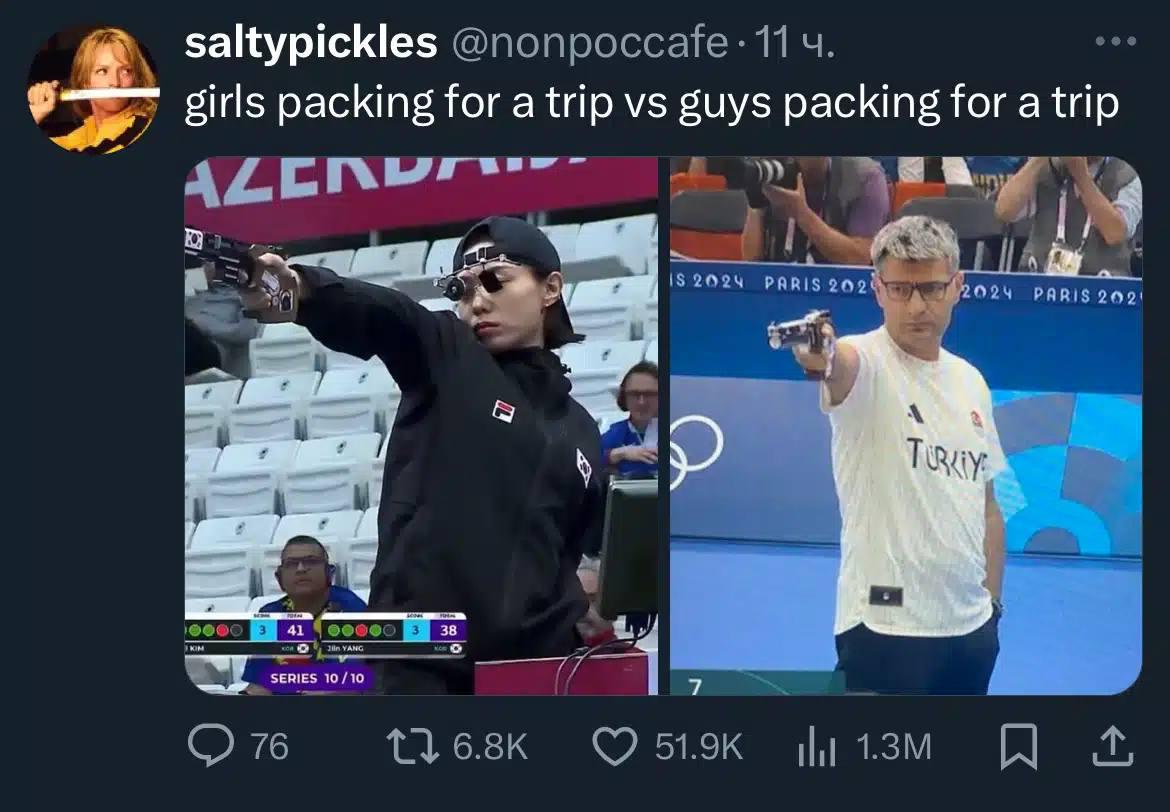 Турецкий стрелок Юсуф Дикеч, завоевавший серебряную медаль Олимпийских игр в соревнованиях по стрельбе из пневматического пистолета с дистанции 10 метров в смешанных парах, привлек внимание пользователей интернета и стал героем мемов.
