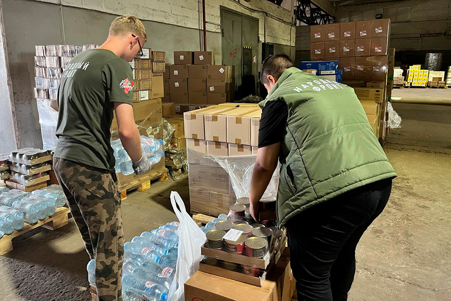 Фотографии собранной гуманитарной помощи для жителей Курской области