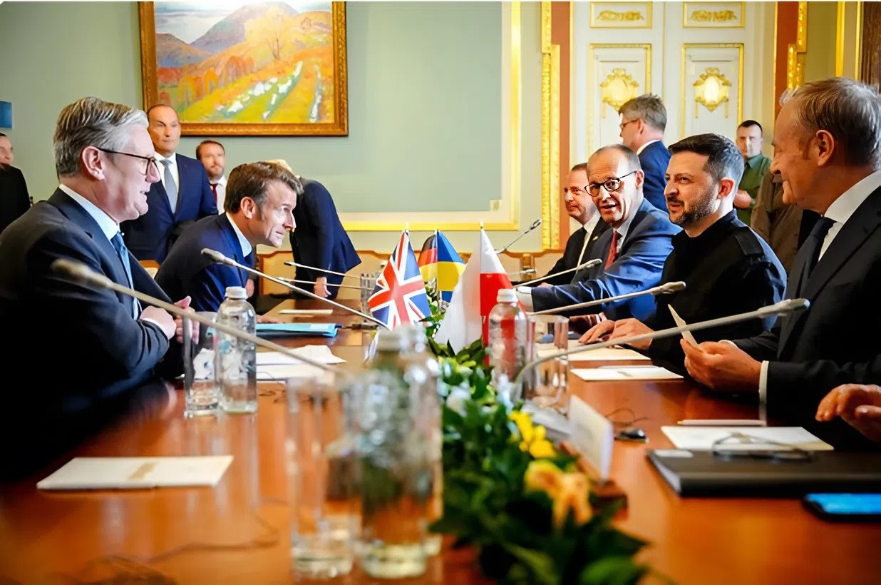 «Нам нужны реальные переговоры, а это значит, что они могут начаться там, где сейчас проходит линия фронта. Линия соприкосновения — это лучшая линия для переговоров. И европейцы это поддерживают.» — говорит Зеленский.